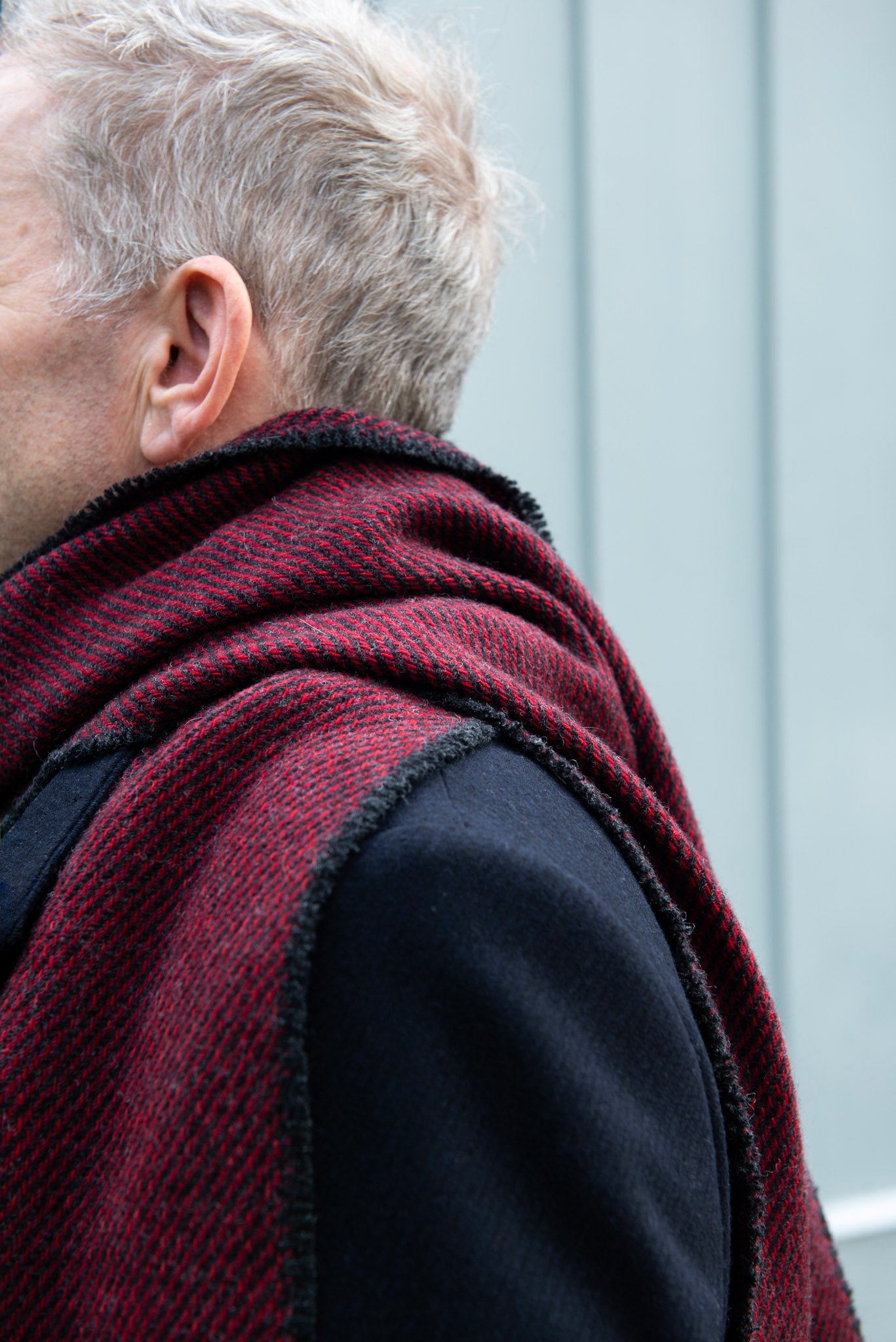 Cranberry and charcoal lambswool.