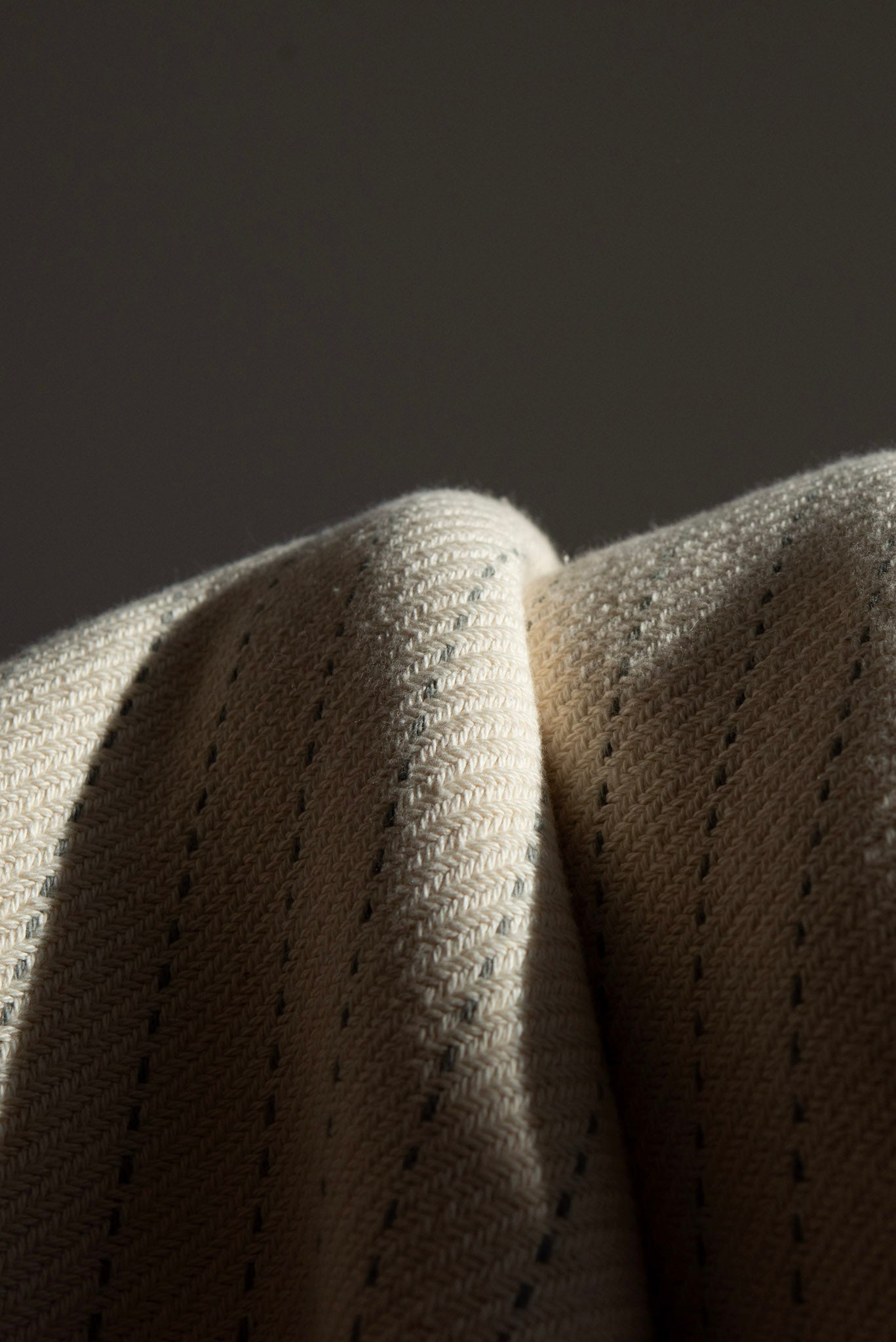 This blanket is woven with an natural organic cotton warp and weft with a grey cotton pinstripe.
